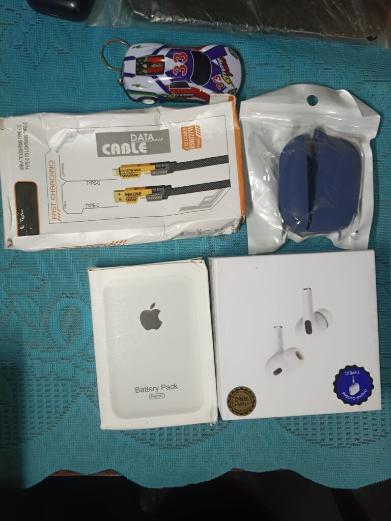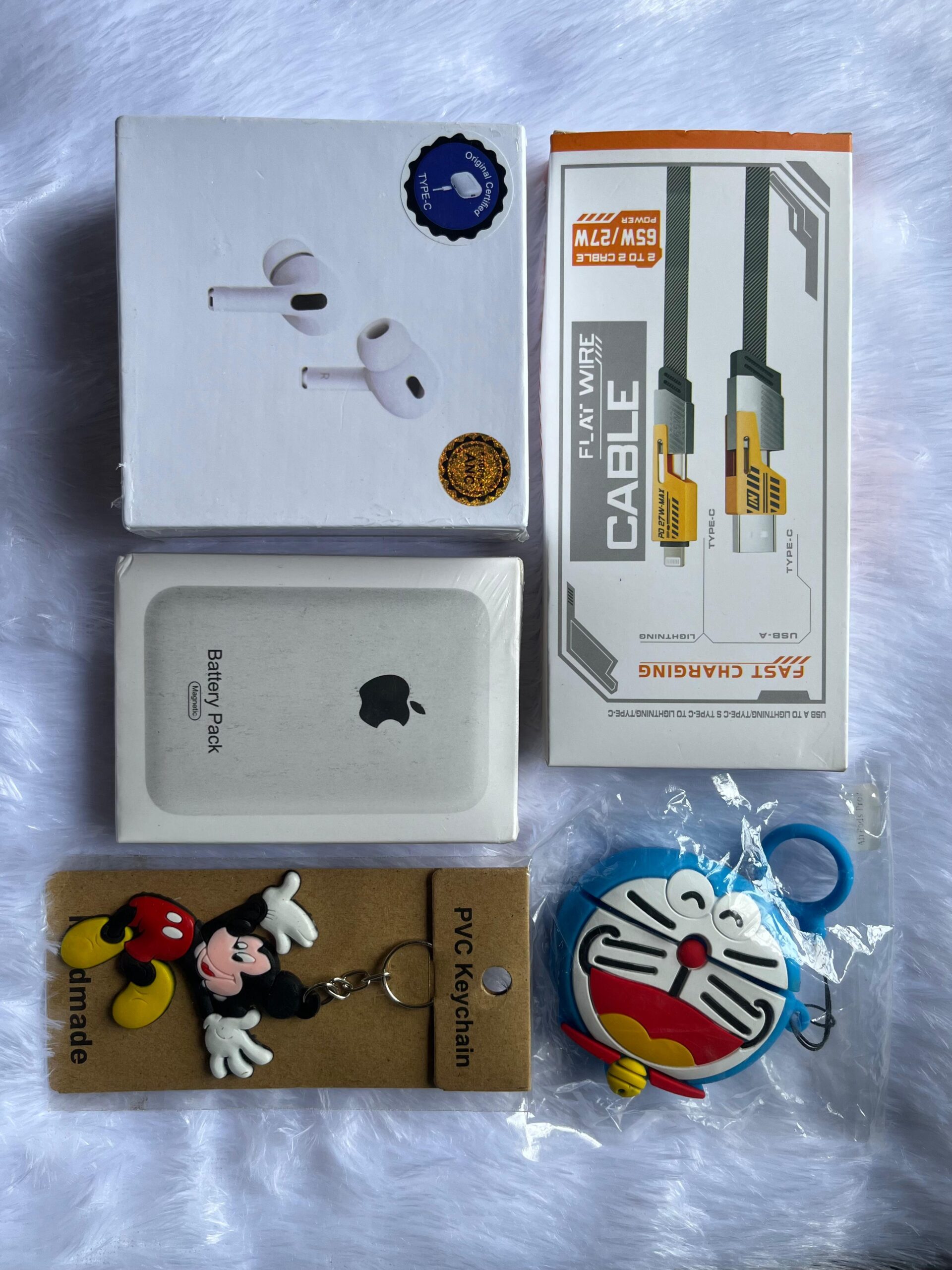 5-in-1 Combo Pack – Air Pro 2, 4-in-1 Fast Charging Cable, MagSafe Power Bank, Protective Silicone Case for Air, and Car Keychain